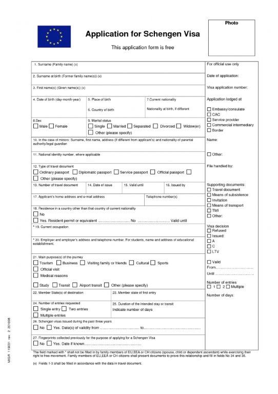 Schengen Vize başvuru formu dikkatli bir şekilde doldurun.